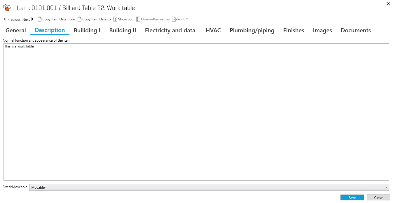 Next/Previous buttons: Provides you with Item Data information for the next and previous Items in the group you currently have selected.