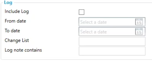 Include Log: When checked, litem data logs will report add additional options become available below.