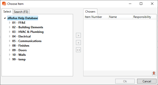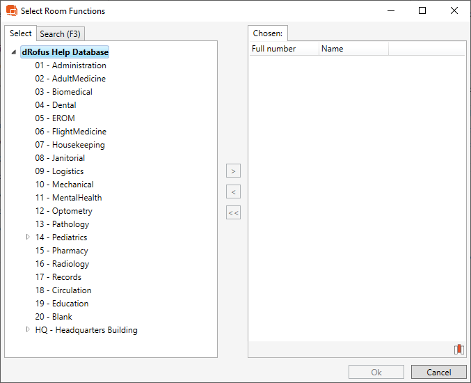 The example report below is only showing fields with data, 'includes Sub Items', 'Includes Occurrences', and are ordered by Room Function Number