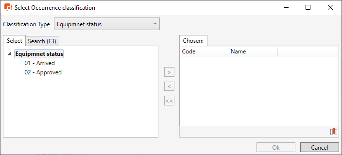 Occurrence Classification/ Status: If checked, only Items with the specified Occurrence Classification/ Status will appear in the Item List