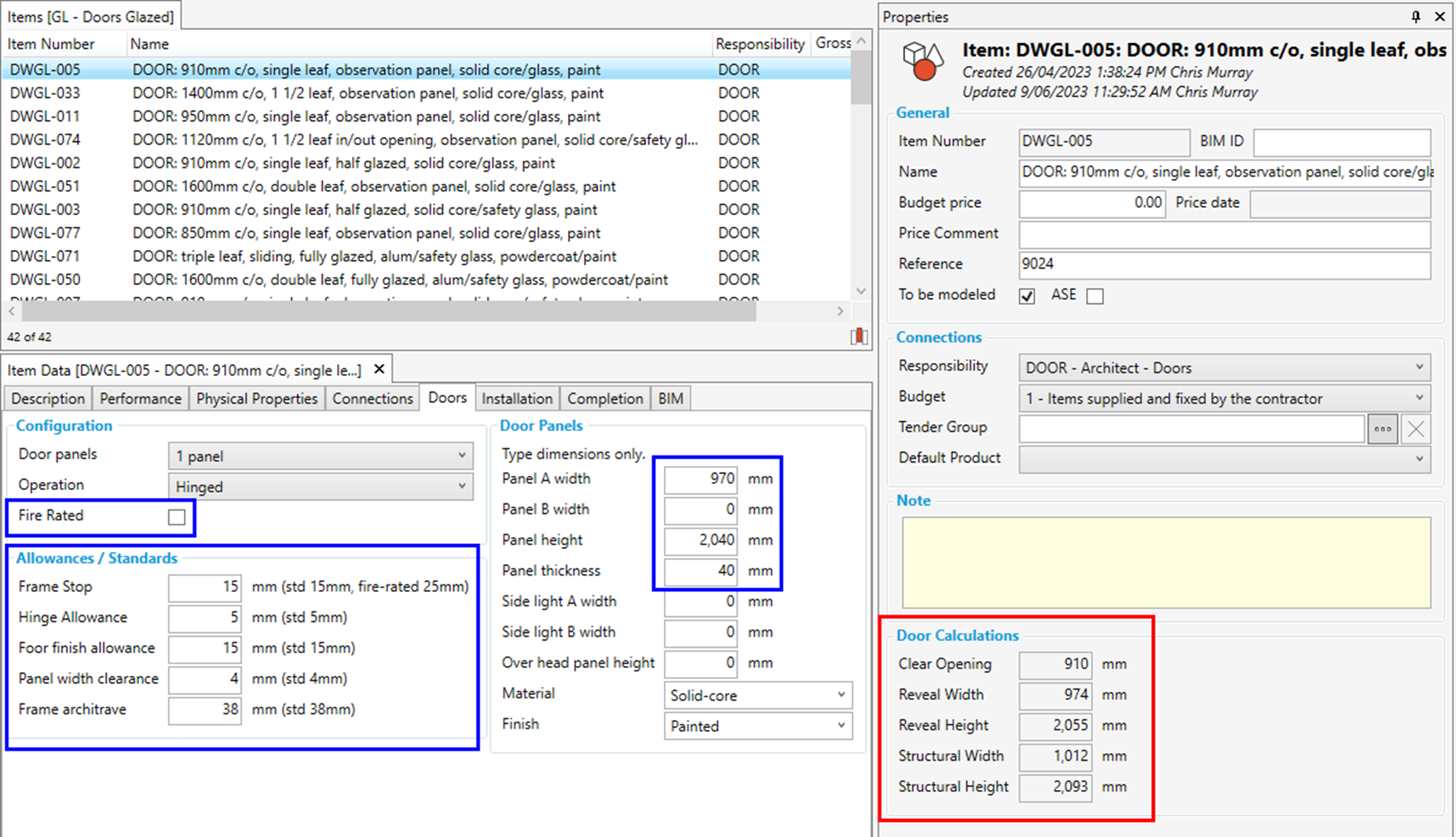 Clear opening width is often dictated by compliance standards involving accessibility; this example has the potential to identify non-compliant doors during the planning and design stages.