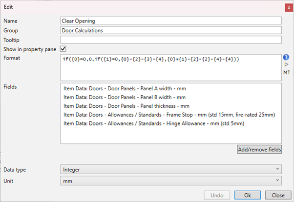 When doors are retrofitted or hosted in masonry walls, the structural opening size is required, the following two examples are a good examples of using a Calculated Attribute as a field: