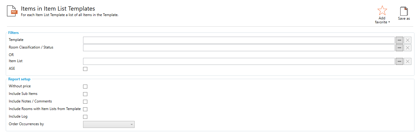 Include Rooms with Item Lists from Template : Reports a list of rooms that use the Item List Template