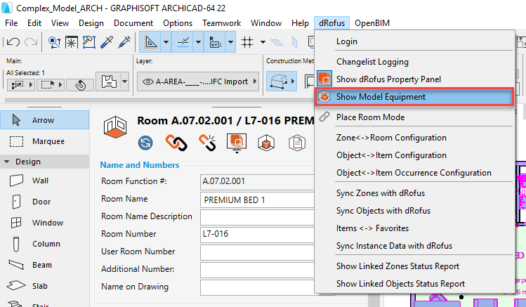 To access this dialog, click on Show Model Equipment within the dRofus Menu as follows: