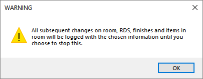 Select "Ok" to start tracking changes with the selected Change List. The following message will pop-up after which you can then select "OK" to confirm that you are aware that all subsequent changes will be logged against the selected Change List until you decide to stop logging changes: