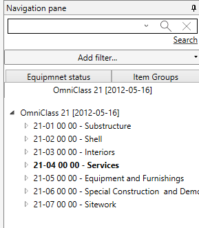 When you add a classifications to Systems, Items, or Rooms you will find an extra tab with the classification name in the navigation pane. When you select the “Classification” tab you will be able to add and navigate between different classification within the “Classification” tab. You will only see Systems, Items and Rooms that have been given the classification. In the example below you will see: