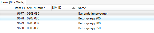 TFM-ID for komponenter komponent “Betongvegg 200” forekomst nummer 030 | ||||||||||||||
