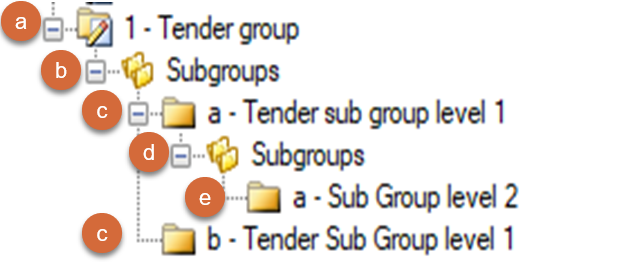 Subgroups can be created to provide for further categorization within a Tender group. This enables the definition of more specific or different requirements for Items within a Subgroup. Subgroups can be used to give suppliers an opportunity to give an offer for a group of Items within a Tender.