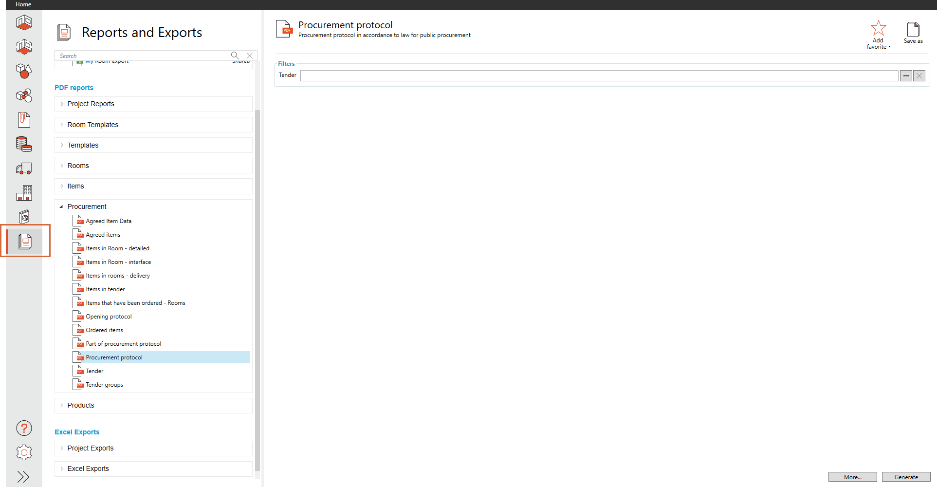 Under the “Reports and Exports” module you are able to generat both PDF Reports and Excel Exports with information from the Procurement Process. You will be given options on what the repports should include.