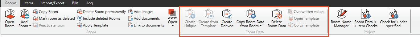 Room data Options: Ribbon menu