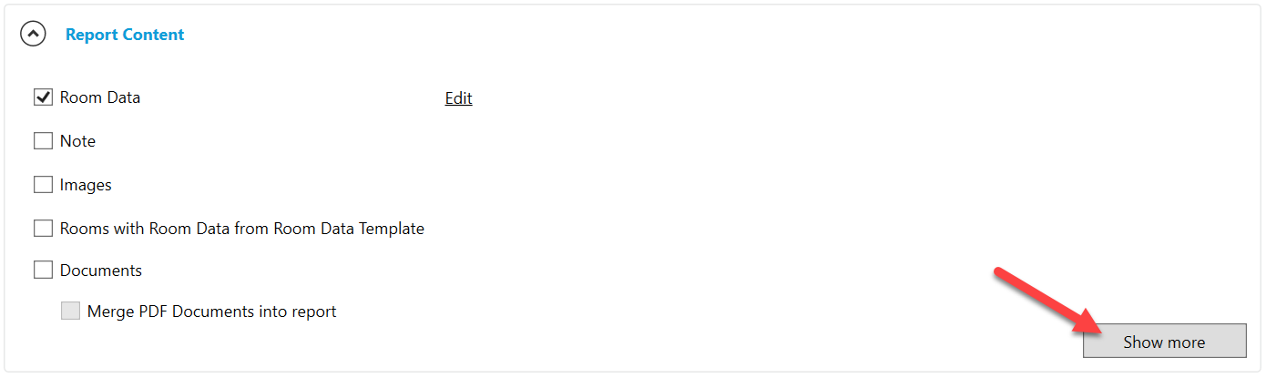 Select the Show more button in the Report Content section to see additional content.