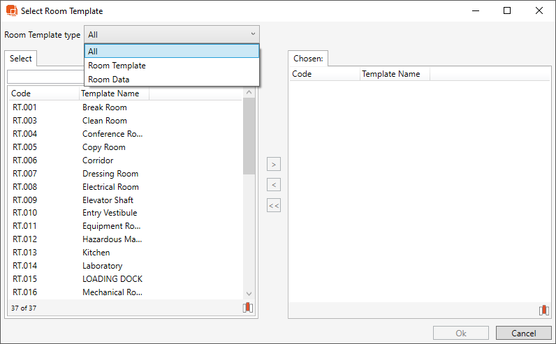 Template: Filters report data to specific Room Templates. The Show filter helps filter to see the Room Templates during the selection process.