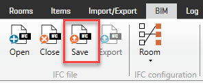 After making changes, the IFC can be saved back locally using the option Room ->BIM -> Model connection → Save IFC model