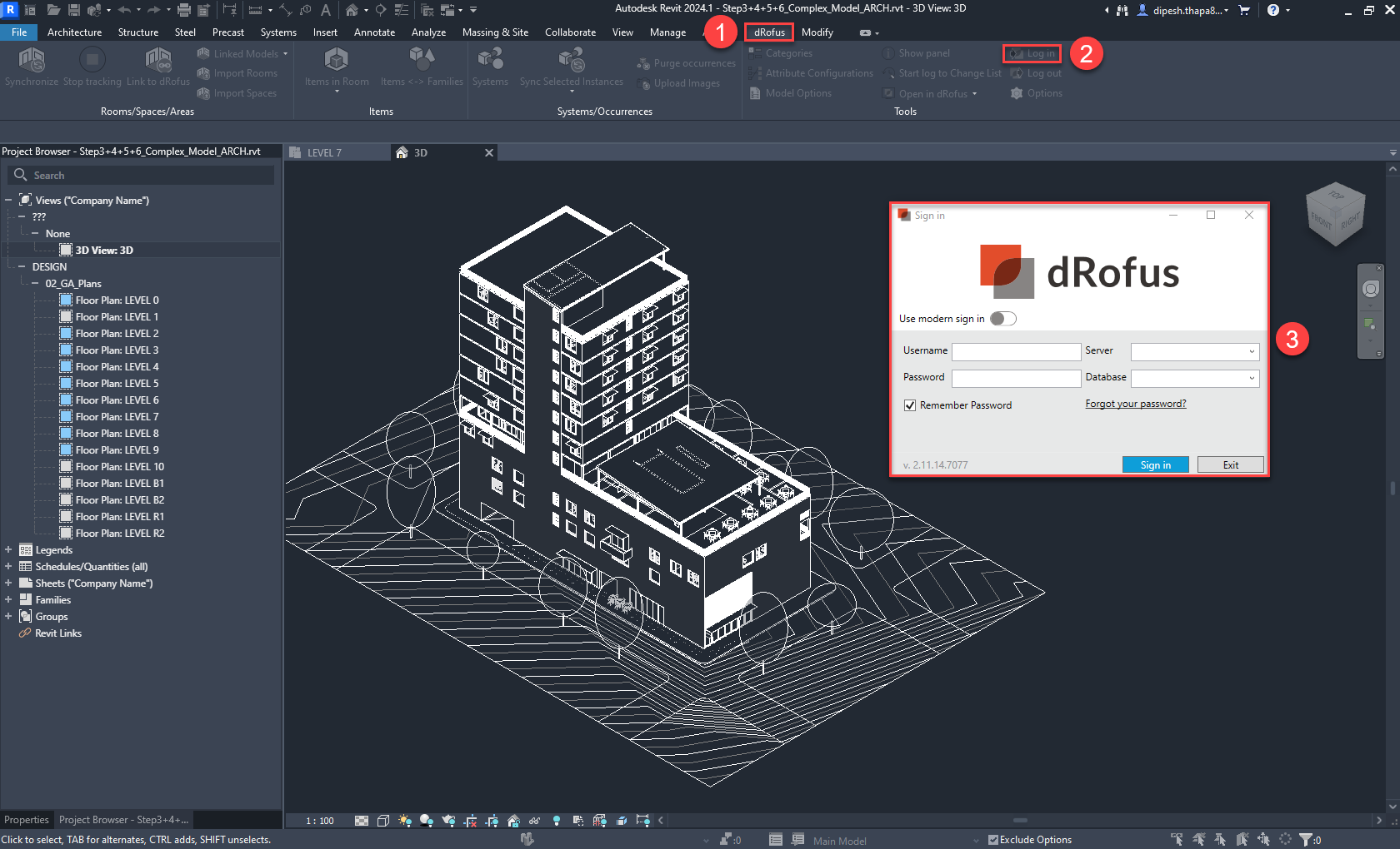 b. Go to the dRofus Ribbon and login: