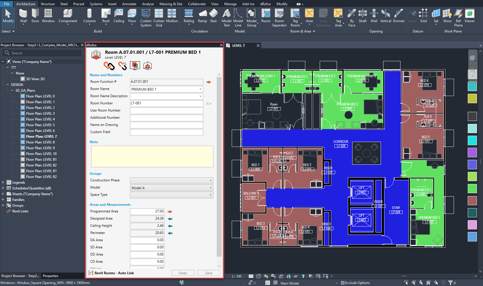 Step 4 - dRofus + Revit Addon Place a Revit Room, Link to a dRofus Room and Export