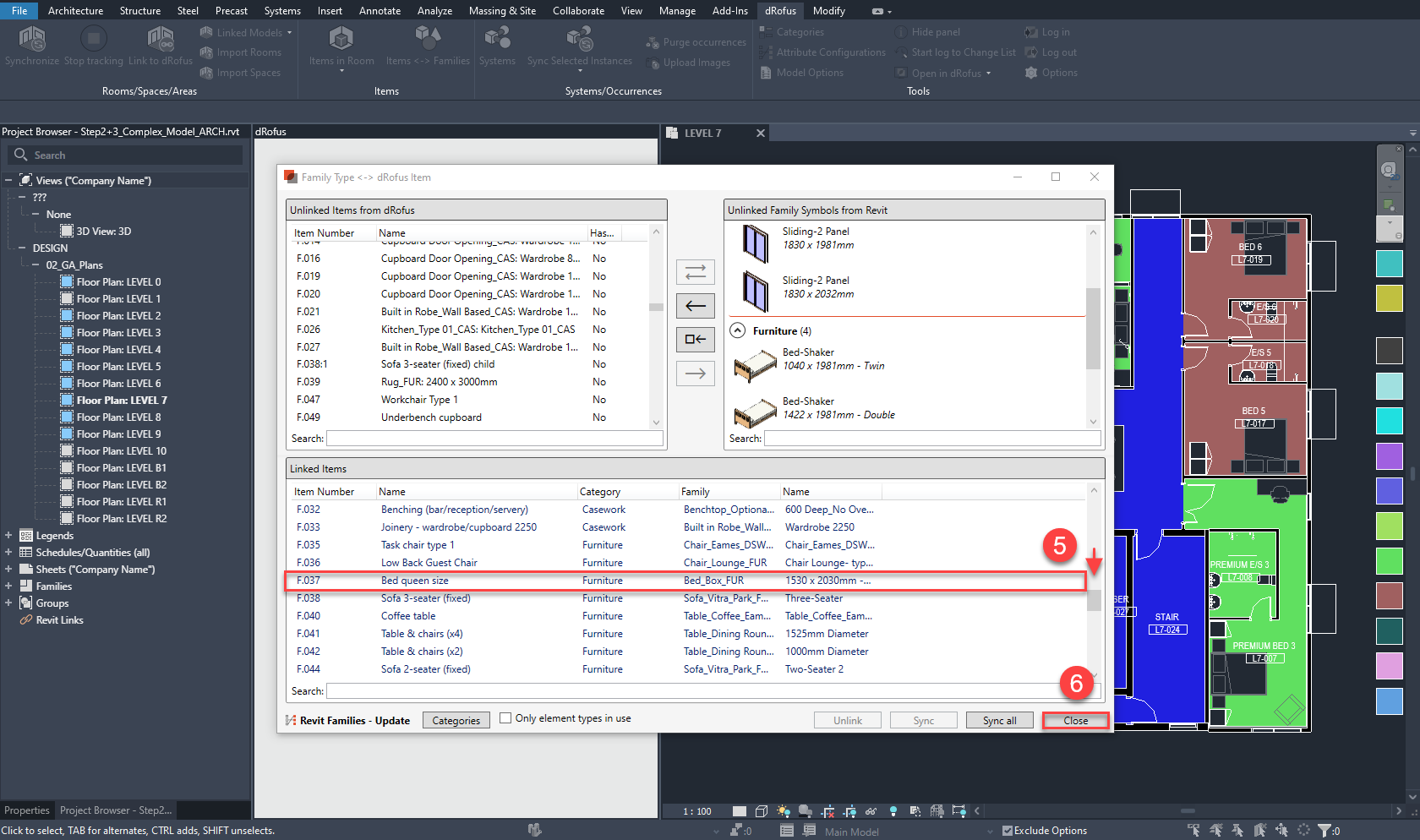 Step 6 - dRofus + Revit Addon Update Occurrences of Items from Revit Model