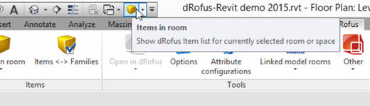 Par la suite, lorsque vous sélectionnerez une pièce et voudrez comparer des items avec dRofus, tout ce que vous avez à faire, c'est d'appuyer sur "Items", et la fenêtre apparaîtra.