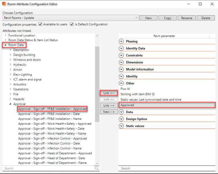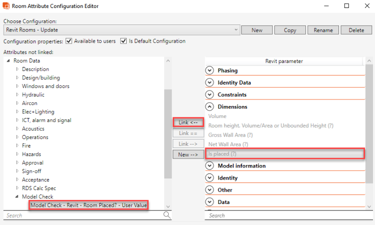 ...l'attribut logique sera mis à jour avec une vérification dans dRofus comme indiqué ci-dessous :