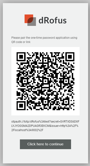 Ces applications ont normalement une option de menu "Ajouter un compte" où vous pouvez scanner le QR code fourni par dRofus. Une fois la configuration terminée, vous pouvez cliquer sur "Cliquez ici pour continuer".