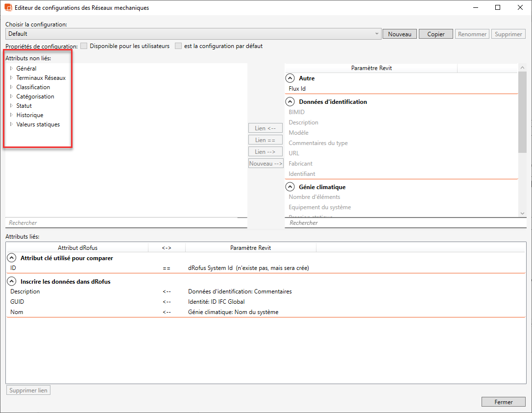 Pour les réseaux dRofus <-> Réseaux Revit: