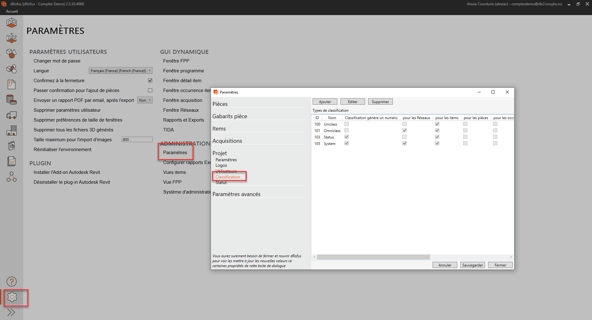 Vous pouvez créer ou mettre à jour la classification et choisir les catégories auquel ils s'appliquent (items/systèmes)