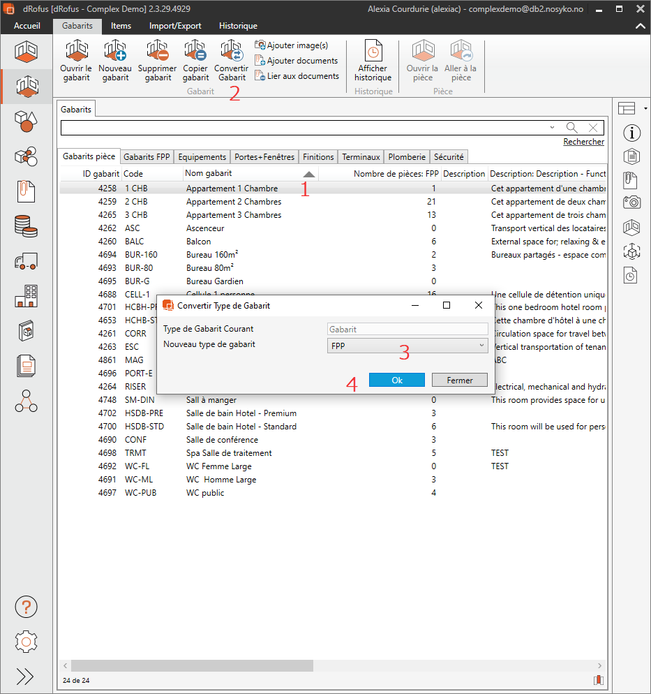 L'option de conversion dans Gabarits pour pièces permet à un utilisateur de convertir un Gabarit de pièce en Gabarit de liste d'items.