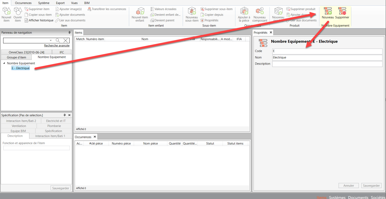 Lorsque vous avez créé une classification/un groupement dans les paramètres d'Admin, cela apparaîtra sous forme d'onglet dans le volet Navigation dans l'aperçu des items.