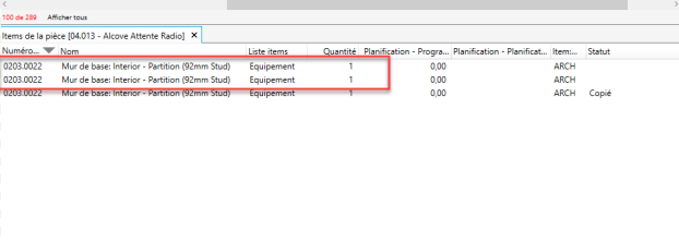 Veuillez noter que les listes d'items doivent être uniques. Cette fonctionnalité n'est pas disponible pour les pièces associées à un gabarit.