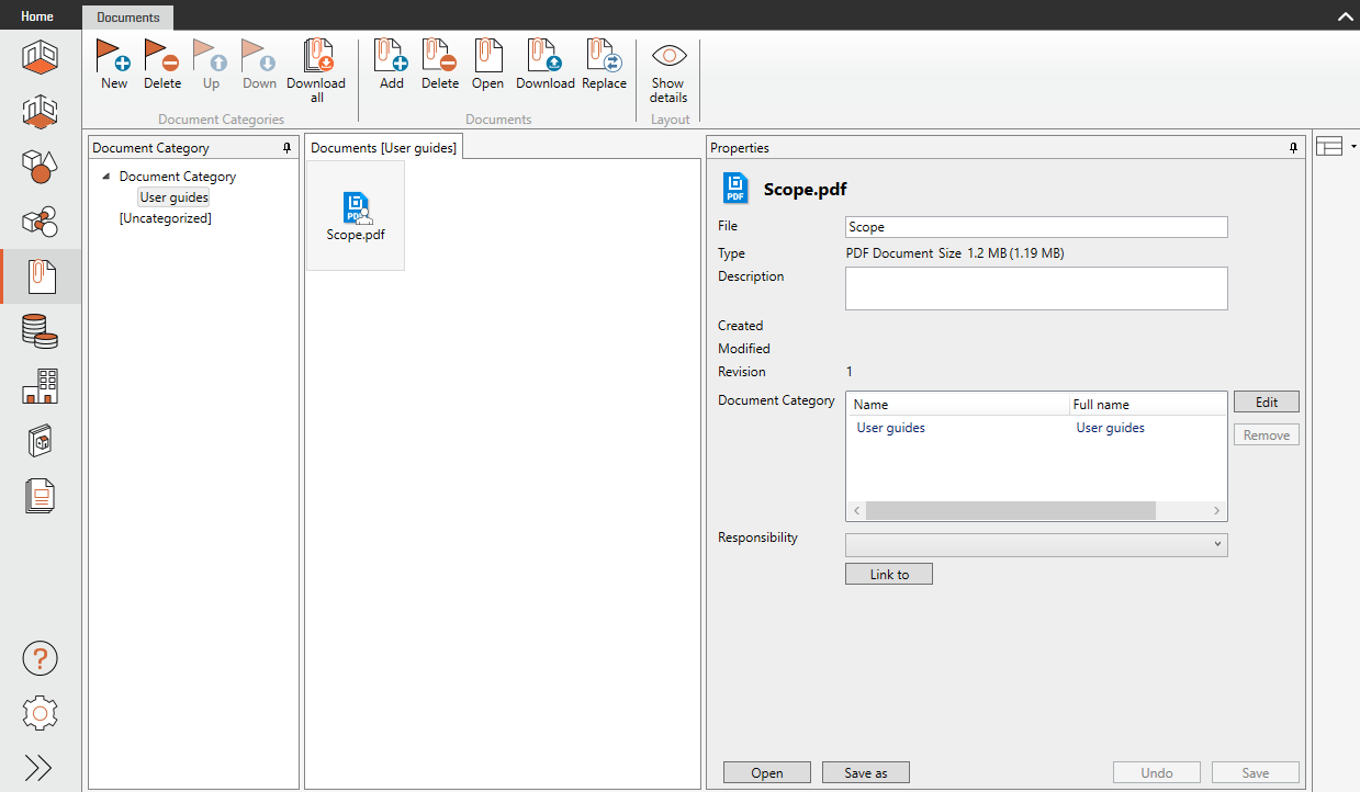 Vous pouvez télécharger des documents soit en les faisant glisser et en les déposant sur la fenêtre, soit en cliquant sur "Ajouter" dans la barre d'outils. Vous pouvez modifier le nom du document et ajouter une description dans les propriétés. Pour enregistrer un ou plusieurs documents sur votre disque dur local, vous sélectionnez les documents et choisissez "Télécharger". Vous pouvez également choisir d'ouvrir un fichier directement en double-cliquant dessus ou en sélectionnant le dossier et en cliquant sur "Télécharger tout" pour télécharger les documents en vrac ; si vous avez un programme qui supporte l'affichage du document. Lors du téléchargement de tous les documents, la structure de dossier dans laquelle se trouvent les documents sera également téléchargée.