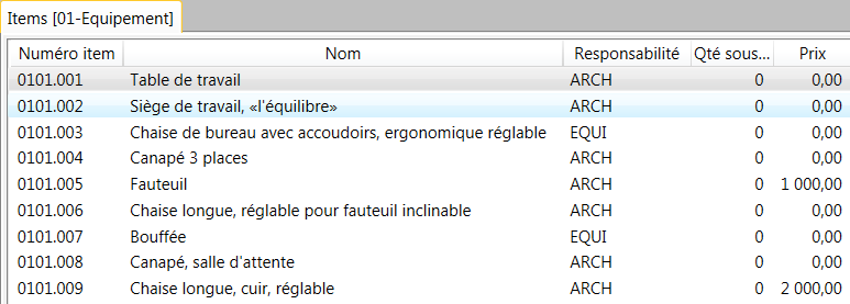 Les utilisateurs peuvent avoir différents droits d'accès à l'Item selon le groupe de responsabilités qu'ils se voient attribuer, tant dans l'Aperçu des items que dans la liste des équipements situés dans la pièce. Ceci se présente visuellement en grisant ceux que l'utilisateur ne peut pas éditer :