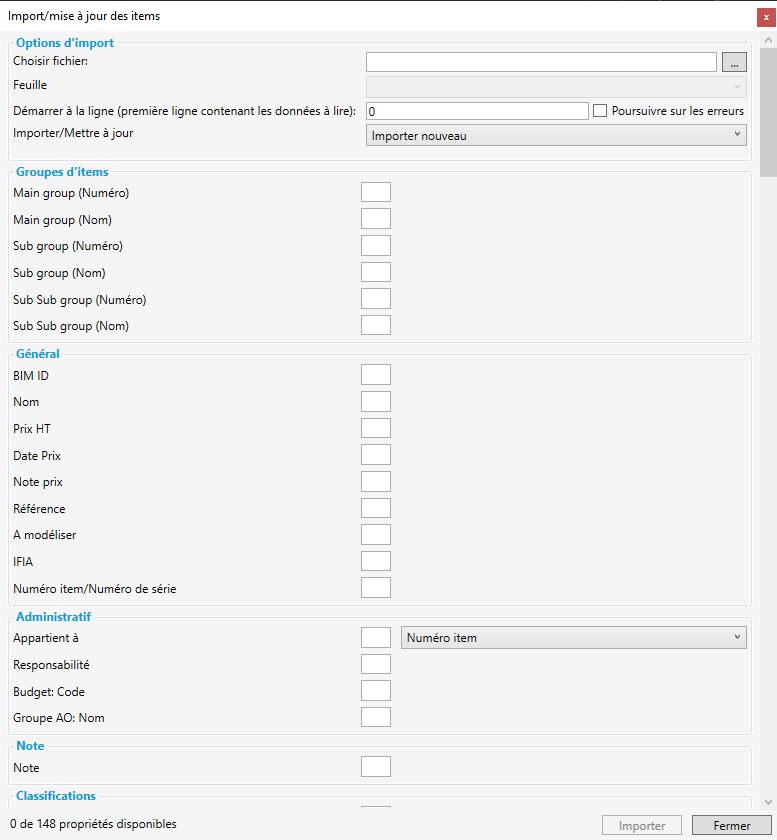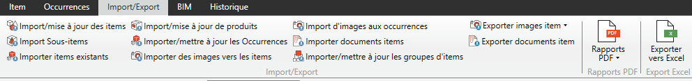 Il est possible d'importer et de mettre à jour des groupes d’items dans dRofus à partir d'Excel en utilisant l'onglet Import/Export dans le module des items.