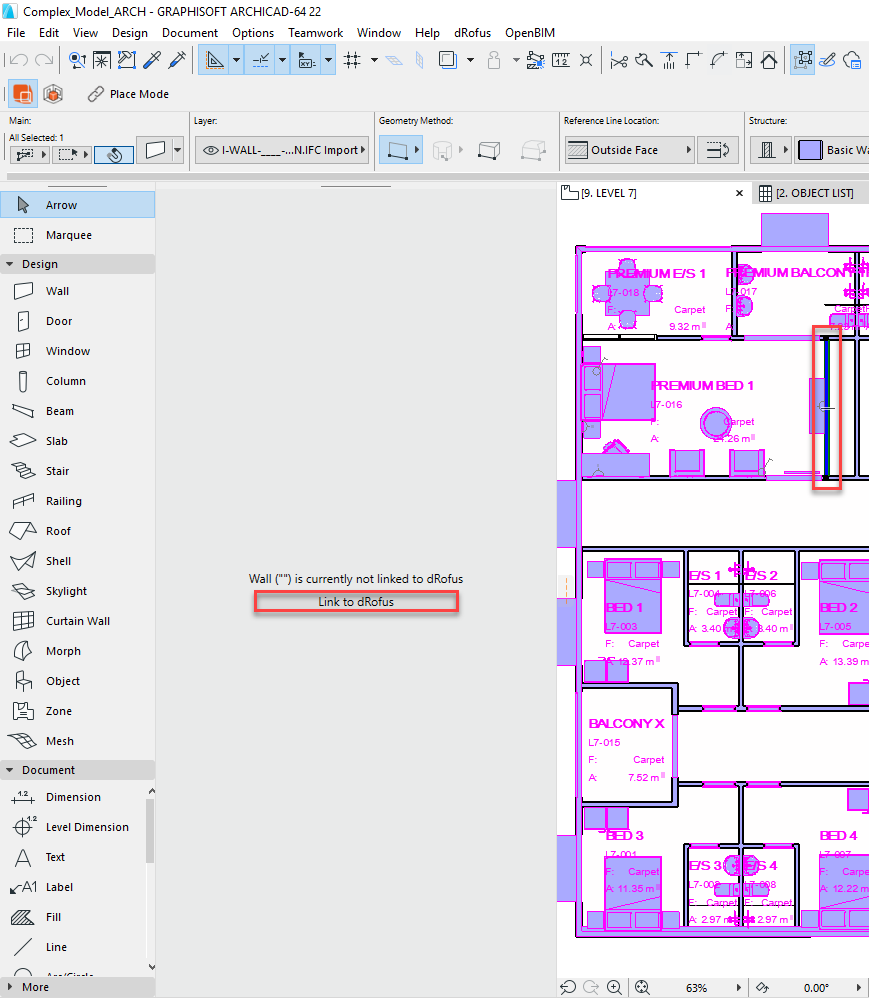 Exemple d'objet ArchiCAD qui n'a pas encore été lié à un item dRofus correspondant: