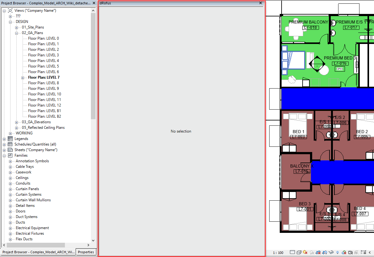 Un panneau dRofus mobile / dockable apparaîtra alors comme suit :