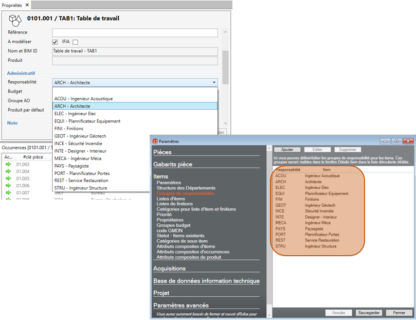 Définissez dans ce menu les différentes responsabilités pour les items dans votre projet.
