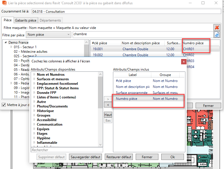 Lier des pièces placées / Nouvelles pièces Revit à des pièces existantes de dRofus