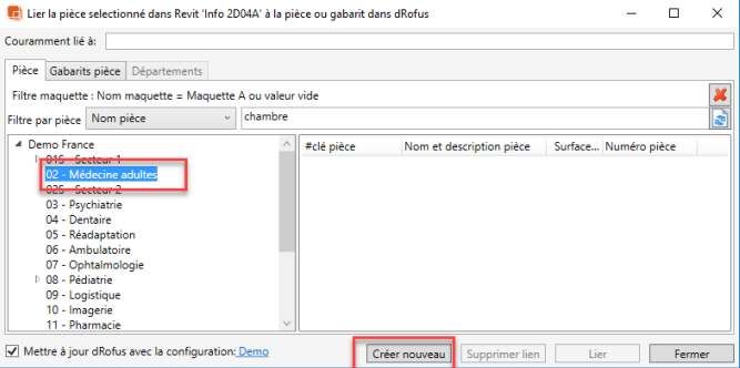 Lier des pièces placées / Nouvelles Pièces Revit pour les créer dans dRofus