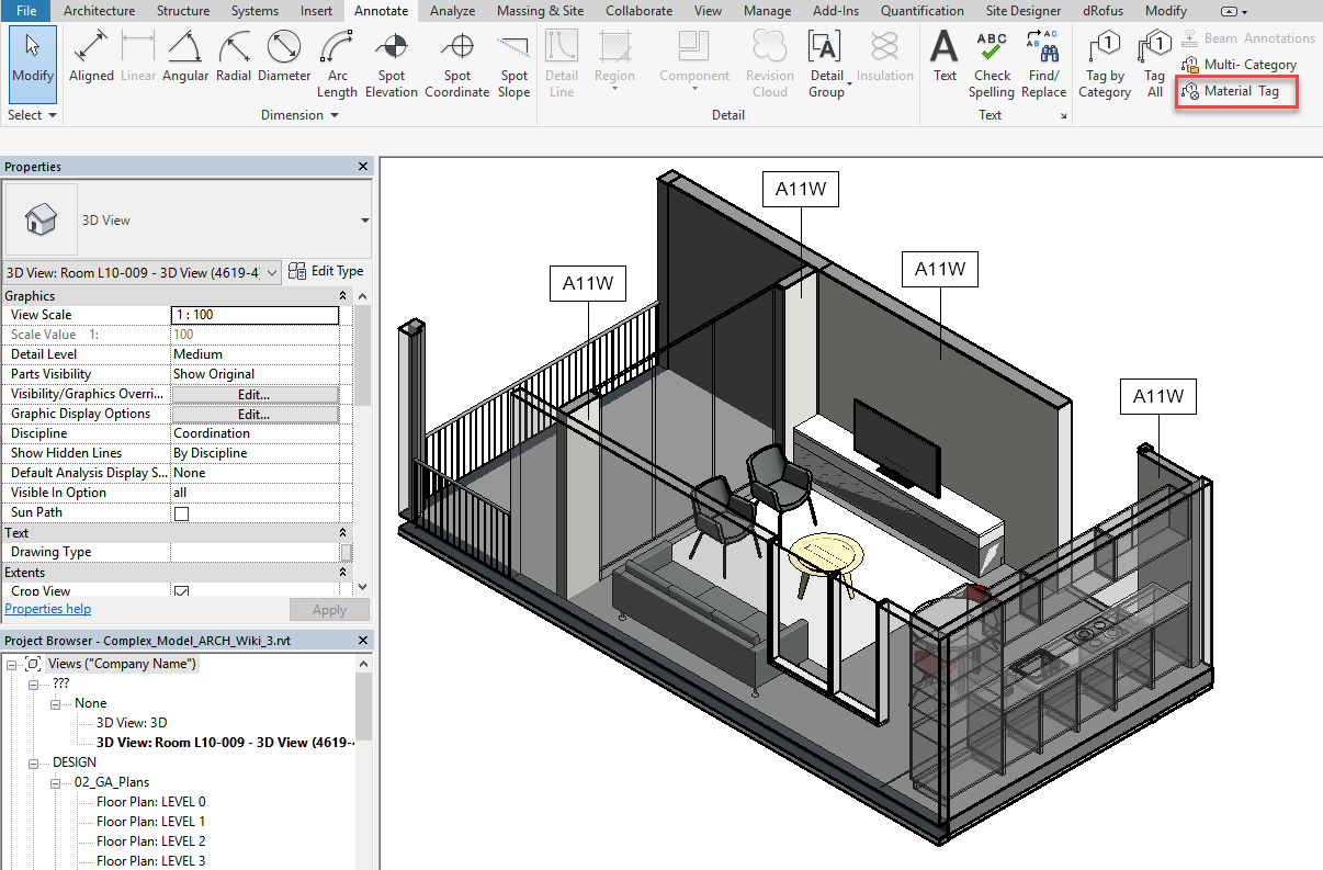 Si vous insérez ensuite une étiquette de matériau (qui comprend «Marque»), vous serez en mesure d'identifier le type de peinture dans votre maquette comme suit: