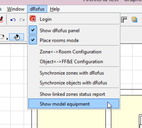 La configuration des attributs est un concept essentiel dans le Plug-In. C'est ici que vous définissez ce qui est le principal (par ex. comment sait-on qu'une pièce/des Items dans dRofus sont les mêmes qu'une zone/un objet dans ArchiCAD) et précisez quelles sont les données qui devront passer d'ArchiCAD à dRofus et quelles sont les données qui devront passer de dRofus à ArchiCAD pendant la synchronisation.Pour créer ou éditer les configurations des attributs, utilisez les items suivants du menu du Plug-In (voir Figure : Plug-in de dRofus installé) :