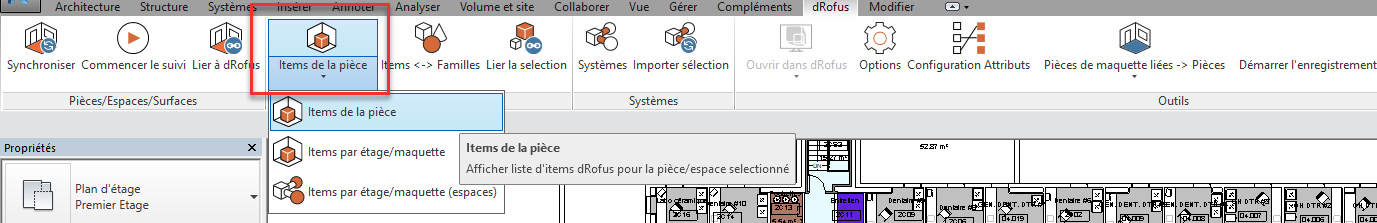 - Montre dans dRofus: Ouvre la liste des items de la pièce et met en évidence l'occurrence dans dRofus.