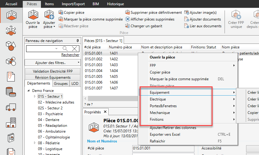 Dans notre exemple, il y aura 4 listes d'items rattachées à la pièce.