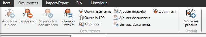 Depuis le volet Item, vous obtenez ces options pour les occurrences :