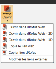 Le menu Ouvrir comprend des fonctionnalités permettant d'accéder à dRofus web à partir du client.