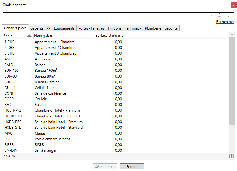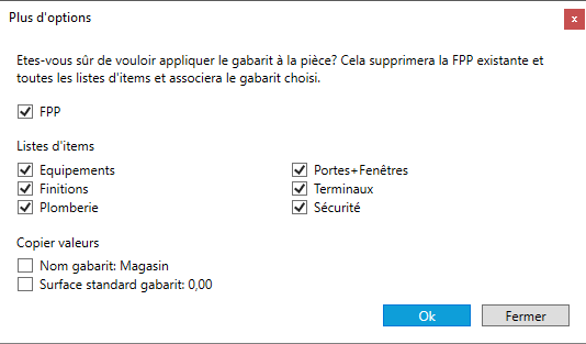 Lorsque cette option est sélectionnée, une fenêtre apparaîtra pour demander quel gabarit de pièce appliquer.