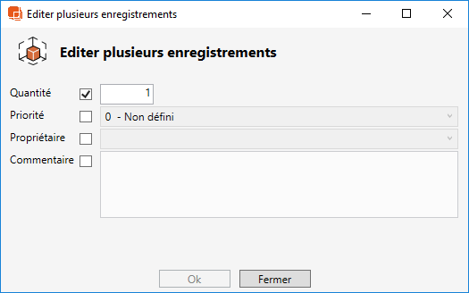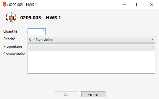 - Editer (ouvrir en double-cliquant sur un item) ouvre une boîte de dialogue dans laquelle vous pouvez modifier la quantité et d'autres données d'occurrence pour cet item.
