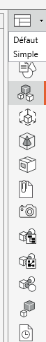 L'icône la plus en haut de ce ruban vertical se rapporte à deux types de mises en page prédéfinies, Default et Simple.