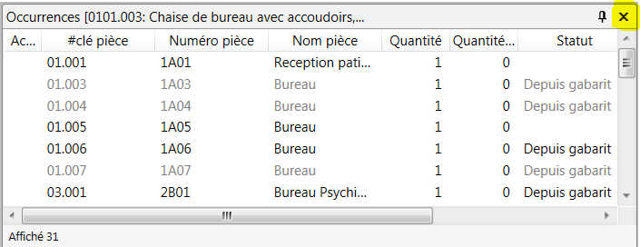 Pour supprimer des fenêtres de l'interface, il suffit de cliquer sur le symbole X situé à droite de l'en-tête de la fenêtre ;