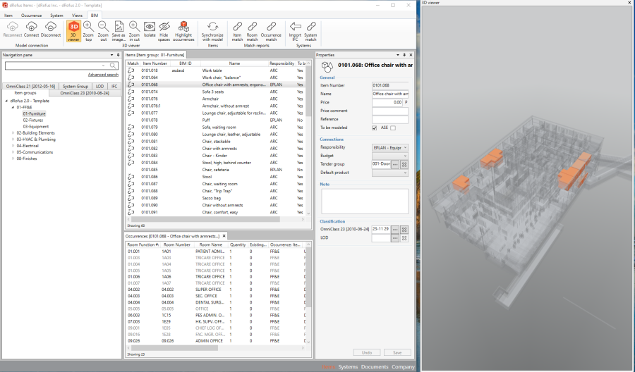 Les utilisateurs ne doivent pas associer une fenêtre à l'intérieur de la limite de l'aperçu des items. Il est possible de garder la fenêtre flottante et de la disposer par ex. sur un deuxième écran. Ceci peut être une option si un utilisateur a besoin de plus d'espace pour d'autres fenêtres ou s'ils veulent disposer la visualiseuse 3D IFC sur un écran à part et la détacher des données.