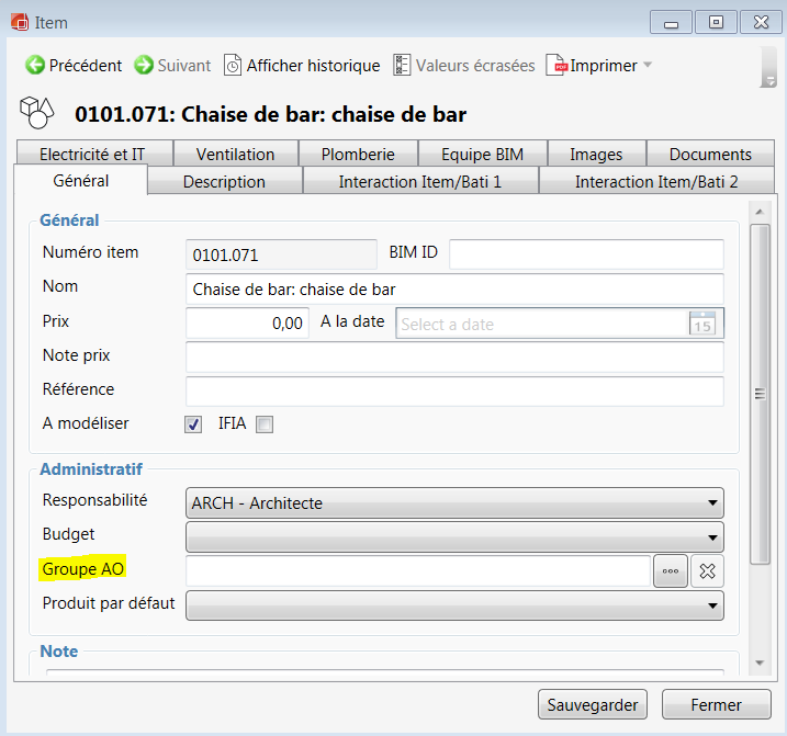 Pour rattacher les FF&E à un groupe