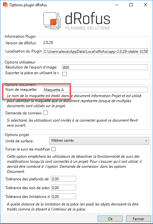 Pour activer cette fonctionnalité, vous devrez configurer une configuration d'attribut qui enregistrera le nom de la maquette active dans dRofus. Lorsque ce paramètre "spécial" est utilisé dans la configuration, le Plug-In activera certaines fonctionnalités qui assureront que les informations sont coordonnées et à jour.