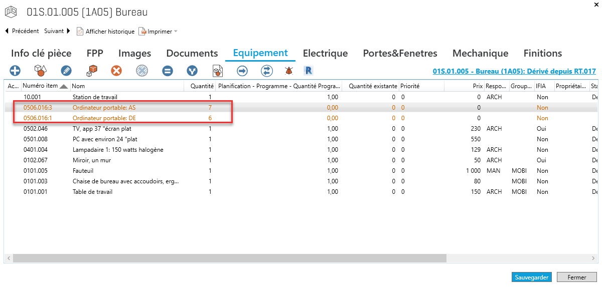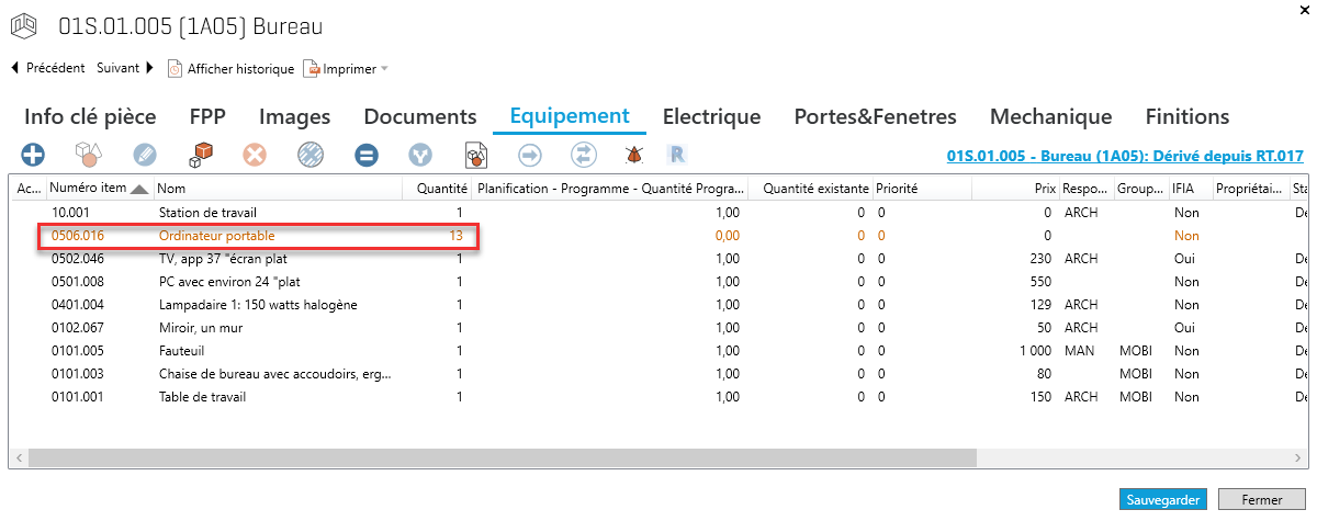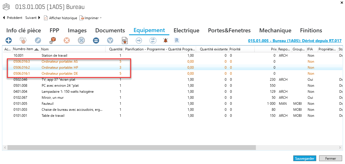 Vous pouvez ensuite aller au bureau dans dRofus et changer les occurrences des 13 ordinateurs portables de: